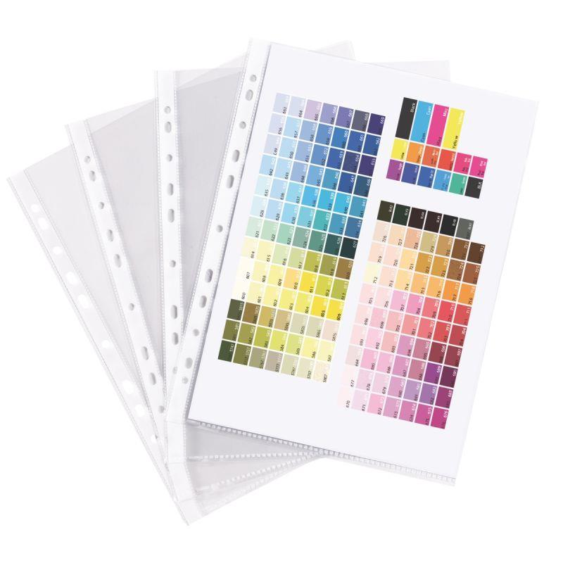 Sachet de 10 pochettes perforées en polypropylène lisse 12/100ème. Pochette cristal lisse très transparente et très résistante. Anti-transfert d'encre.